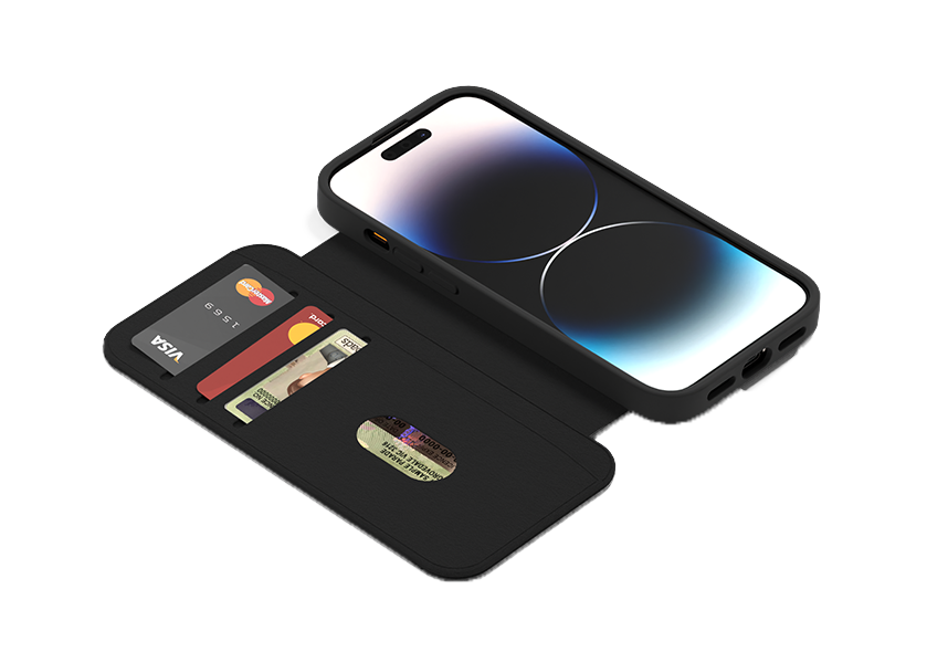 Conveniently hold all your essentials in one place, whilst protecting your phone. The inside cover protects the screen and has integrated slots for credit cards, storage for cash and an ID pouch.